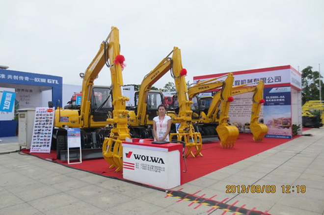 作為中國輪式挖掘機的領軍品牌,沃爾華集團踴躍申請到優質展位,搭建極具特色的展臺,攜其明星產品DLS875-9A、DLS880-9A輪式液壓挖掘機及DLS875-9A、DLS880-9A輪式蔗木裝卸機再次亮相第十屆中國—東盟博覽會。