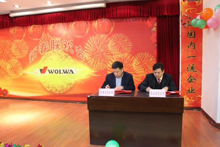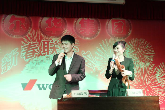 新年晚會由集團財務總監王總主持,在王勇先生妙語生花、溫文儒雅的主持下,在富有激情的音樂聲中,拉開了序幕。董事長楊總做了沃爾華集團2015年度工作總結及2016年度工作規劃報告,并發表了熱情洋溢的新年致辭,祝愿大家新年愉快,猴年大吉、闔家幸福!隨后集團各分公司--山東沃爾華工程機械有限公司總經理張總、山東德立信液壓有限公司張總、山東沃爾華管業有限公司張總、沃爾華集團電子商務部馮部長分別做了2015年度工作總結及2016年度工作規劃報告,并分別與集團簽訂了2016年度經營管理目標責任書。