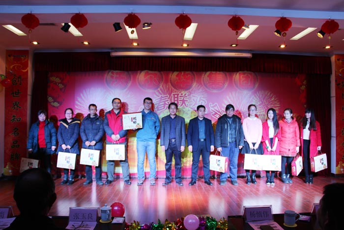 晚會其間,還分別進行了幸運抽獎,頒發優秀員工、先進工作者、先進班組、先進公司等獎項并與獲獎者合影。今年年會還特別設置了“微信搶紅包”游戲,現場全員參與,更是為晚會錦上添花,讓會場充滿了歡笑。