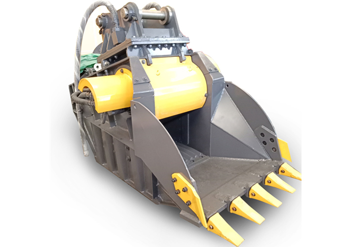 顎式破碎斗是一種機架外形成鏟斗狀的新型液壓破碎屬具,作為挖掘機的配套屬具,在使用時,該裝置以挖機臂為操作載體鏟裝物料,并對鏟裝的建筑垃圾或物料進行破碎處理,從而可以得到所需求的物料塊度以及可回收有用材料。通過現場挖掘、現場破碎、現場回收利用,實現建筑垃圾資源化、減量化、無害化,不僅大大減少了運輸量,節省填埋費,提高了回收利用率,而且節約了大量填埋用地,減少對環境的污染,還能減少對天然砂石的開采,保護了自然資源,符合國家可持續發展戰略。該裝置具有結構靈活,工作可靠,適應性強,成本低,易維護等突出優點,還可廣泛應用于礦山開采、道路維護與建設等行業中。