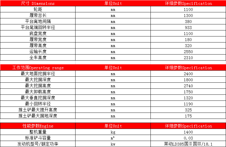 DLS18小型履帶挖掘機參數