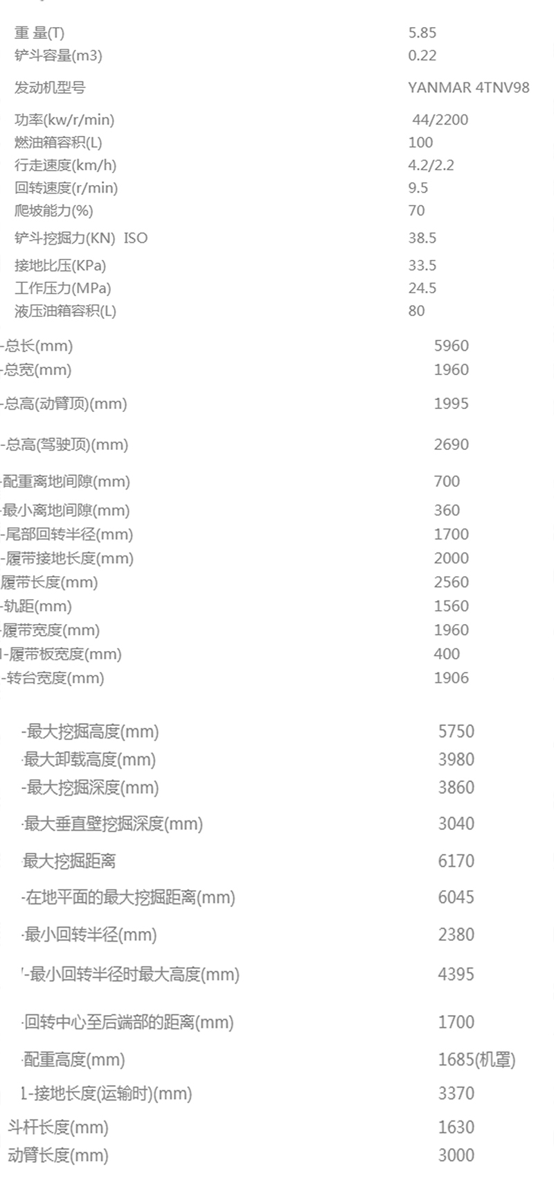 DLS60小型履帶挖掘機(jī)參數(shù)