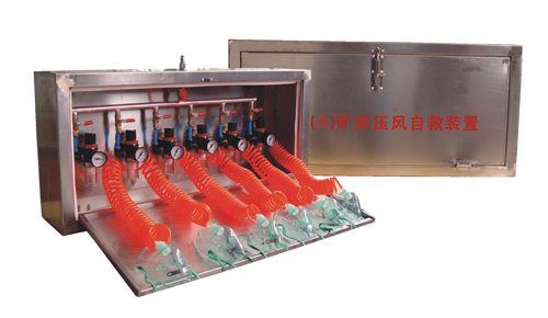 ZYJ—(A)型壓風自救裝置主要用于具有煤與瓦斯突出的煤礦井下救災防護。當煤與瓦斯突出或有突出預兆時,工作人員可就近進入自救裝置內避災,戴上呼吸器,等待救援。