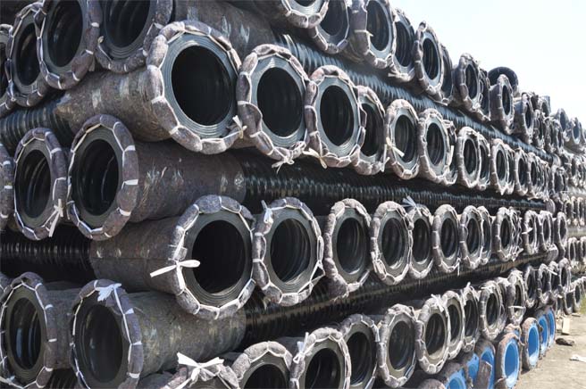 管道采用螺旋焊接波紋鋼管為主體,相當于壁厚6倍的鋼管強度