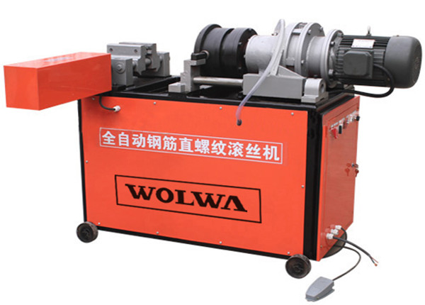鋼筋直螺紋滾絲機是近年來廣泛用于建筑行業的一種鋼筋加工機械。它就把鋼筋端頭部位一次快速直接滾制使紋絲機頭部位產生冷性硬化,從而強度得到提高,使鋼筋絲頭達到與母材相同。由機架、夾緊機構、進給拖板、減速機及滾絲頭、冷卻系統、電器系統組成。