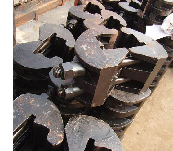 夾軌器與鋼軌是通過夾鉗軸后端的孔連接,機車行走時,拖(推)動夾軌器同步移動時,導輪在夾軌器的重量壓力下可沿蛇形軌道滾動,并經引導輪支架、導鉗軸帶動夾軌器整體在固定軸沿軌道面浮動。