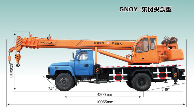 GNQY-東風尖頭型吊車是是一款性能好操作靈活的12噸小型汽車起重機,以東風尖頭汽車吊裝底盤做行走,駕駛更舒適、安全。可安裝電機泵站,直接以380V電源作動力,節約環保。該產品通過全國機動車公告公示,在全國各地均可上牌照,并且購置費及其他營運費用全免,產品輕便靈活,價位低廉,適用于農村及城鄉結合部工作。低價位投資,高檔產品回報。